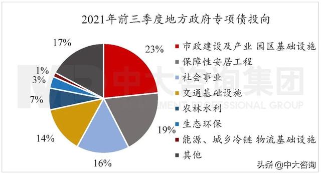 地方政府专项债券主要用于支持地方重大基础设施和民生工程,在新冠疫情持续导致经济下行的态势下,地方专项债券通过支持有效投资,拉动内需,稳定经济,实现逆周期调节的作用。从今年前三季度地方政府专项债券投向看,专项债券主要用于市政及产业园基建、保障性安居工程、社会事业、交通基础设施等传统领域,四者共占专项债券投入总额72%。