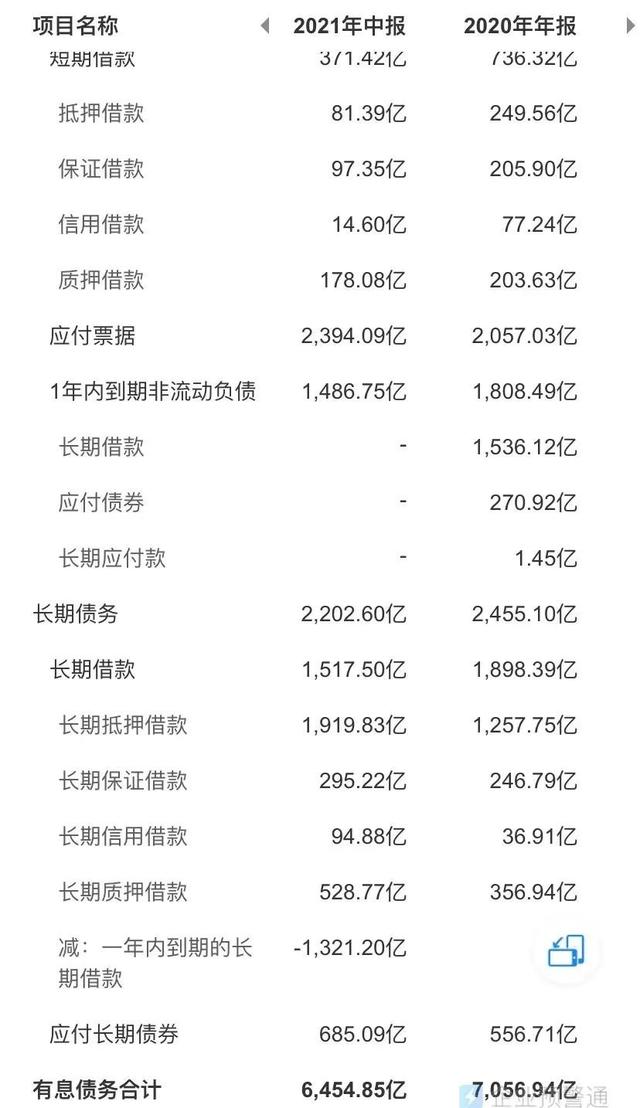 公开披露的主要融资中,除轮上述提到另外还有:银行借款、租赁融资、信托融资等等。下面仅列出最新报告期披露的【授信额度】,其他融资详情及往年数据均可在企业预警通app免费查看。