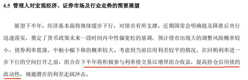 中期报告提到,提高持仓信用债的流动性,积极参与利率债交易,三四季度也延续这个策略,没有太大的变化。