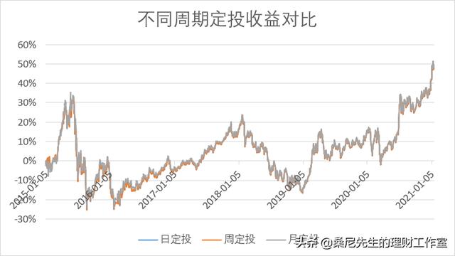 日定投、周定投、月定投差距很小。哪天定投也没有太大区别。