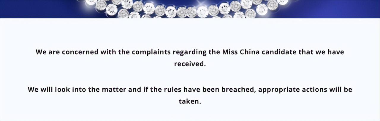 8月24日晚间,世界小姐(Miss World)官网发布声明称,已收到有关世界小姐中国区候选人的投诉,“我们将调查此事,如果违反规定,将采取适当行动。”