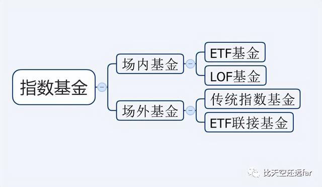 指数基金分为场内指数基金和场外指数基金两种。关于场内基金和场外基金的,在《1.2 基金的分类》中做了详细介绍,如有遗忘,可回顾前文。