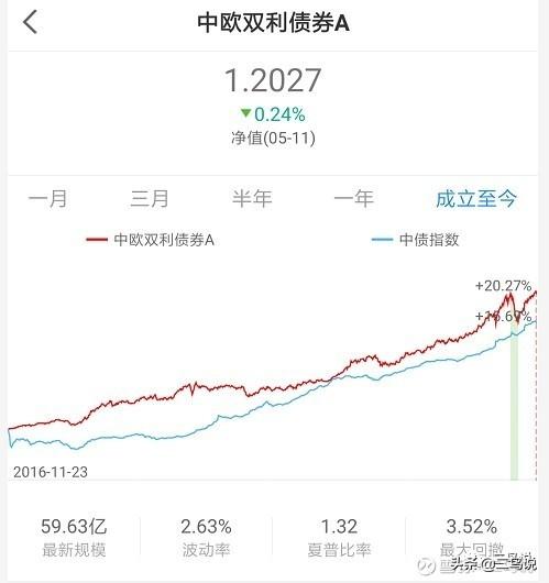 中欧双利债券(002961)成立于2016年11月,黄华自2017年4月参与管理,至今任职回报为18.7%,同类排名TOP20%,年化收益率5.8%,近3年最大回撤3.5%。