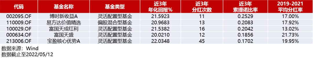 也可以发现基金类型是以灵活配置型为主,没有了仓位限制,分红也就更容易了。