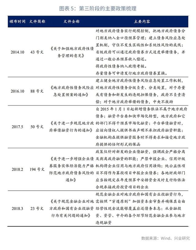 第三阶段为2014年9月-2018年6月,新预算法、国发43号文两个地方政府融资的纲领性文件颁布,标志着城投平台监管政策开始健全,定下了后续“开正门,堵偏门”的政策基调,推动了地方政府债的发行大爆发,银行积极参与地方政府债投资,存量规模一举超越城投债;中资美元债规模大幅提高,信贷和非标占比则出现下滑。