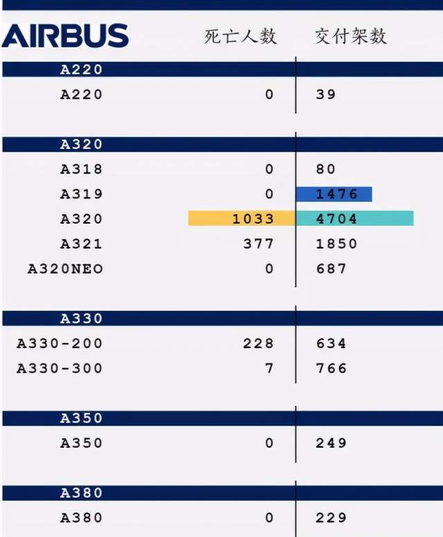 在2019年3月,埃塞俄比亚航空公司一架飞机出现事故、导致全球波音737max停飞以前,波音和空客各种机型分别发生了13711和10714次重大事故,死亡人数分别是5782人和1645人。尽管没有具体数据,但就历史发展和生产规模来看,波音飞机的市场占有率仍然更高。因此在分母不确定的情况下,难以用以上数据判断两家公司的安全系数。