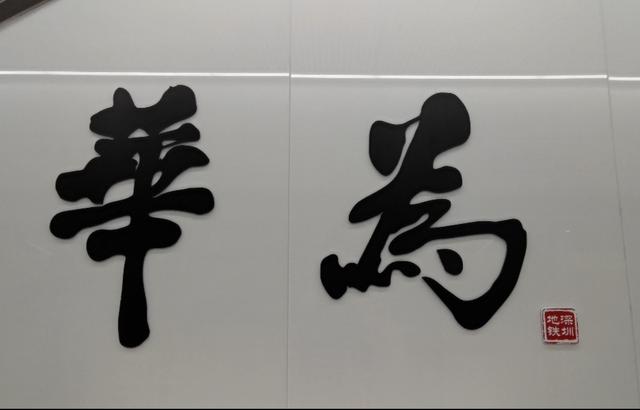 “下一站,华为。”10号线中传来普通话、粤语和英文的三种语言播报。一下车,充满艺术感的两个繁体大字“华为”就跃入眼帘。与深圳其他印刷体的站名不同,“华为”是毛笔书写的字体,雄浑有力,气势非凡。而这个有着强烈冲击的站名,现在成为了乘客们候车期间必拍的打卡点。