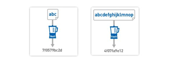 那它是如何运行的呢?哈希函数可以把给定的数据转换成固定长度的无规律数值。此处为方便读者理解,我们借用《我的第一本算法书》里的比喻:将哈希函数想象成搅拌机。
