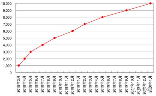 自2017年年底开始,日本虚拟偶像数量一路飙升,根据User Local统计,截止到2020年1月虚拟偶像的数量已经超过1万人,几乎保持在每月1000人以上的速度递增。