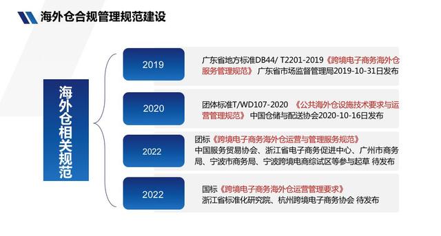 参考文件:1、广东省地方标准 DB44/T2201—2019《跨境电子商务海外仓服务管理规范》2、团体标准 T/WD107-2020《公共海外仓设施技术要求与运营管理规范》本文作者