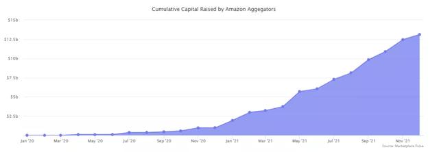 下表为活跃在市场的亚马逊品牌收购商筹资数额统计(2021年):