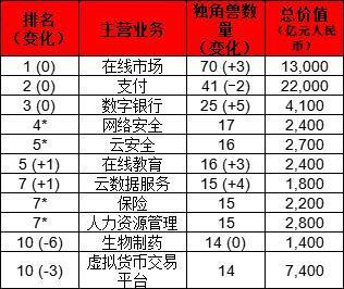 金融科技、电子商务和软件服务是全球独角兽的主要行业。