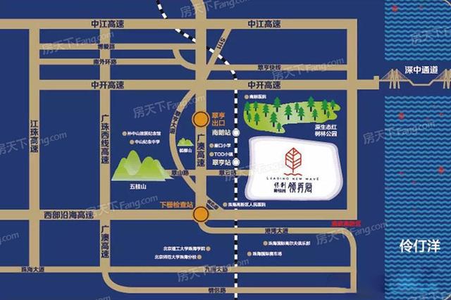 项目简介:碧桂园 保利·天启占地面积125.66亩,位于中山市翠亨新区,是南沙、前海、横琴三大自贸区的交叉点,粤港澳湾区门户,扼守深中通道、港珠澳大桥主动脉,区域价值无可比拟。两大千亿品牌携手共筑,依托湾区门户价值,联袂打造时代钜作,创新南北对流一字楼产品、独创高尔夫立体多景园林、采用4.0智慧家居技术,享国家一级资质物业,打造粤港澳门户精端奢宅,开辟了与时俱进的现代奢居生态体系,敬献湾区人居。 项目所在位置为翠亨的居住核心,南边为规划双向8车道翠云路(建设中)接驳东部外环市场、直达深中通道、港珠澳大桥;S111省道直接通往珠海;邻近广珠、深珠城轨枢纽站——翠亨站(规划中);碧桂园、保利联手打造风情商业街,占地约2万㎡商业综合体(规划中);周边自然资源优越,北面有近万亩的红树林生态公园(规划中),临近五桂山山脉、伶仃洋海岸线。便捷通达孙中山故居、壹加壹商圈、南朗市场等商圈;周边有纪念中学、翠亨中学、翠亨小学等,医疗配套:南朗医院、翠亨医院等。