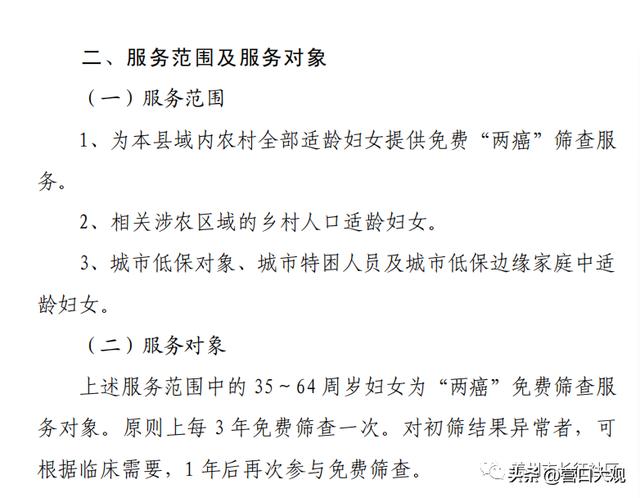符合下面服务范围及服务对象的请,拿身份证到妇幼保健院去体检,去时报一下是西城办事处哪个社区或村的,筛查时间8月初开始。