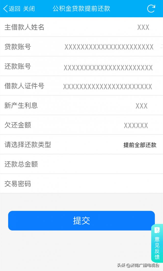 根据济南市住房公积金中心官网显示,提前还款可采取提前一次性归还全部贷款本息或提前归还部分贷款本金的方式。