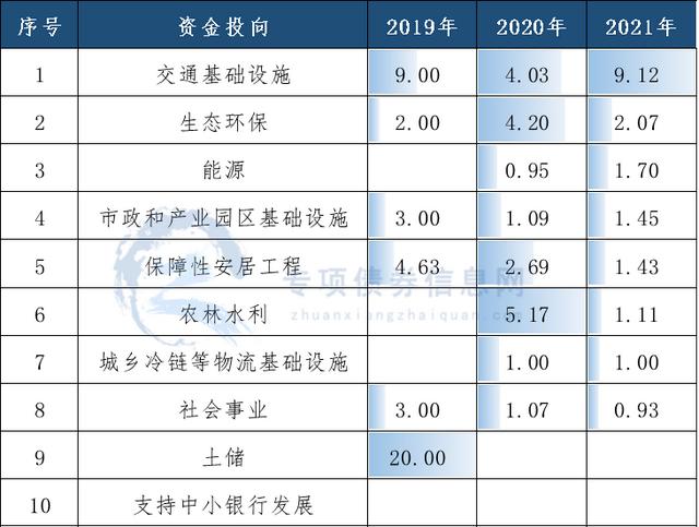 表2:宁波市2019-2021年新增专项债券资金投向规模(亿元)表3:宁波市2019-2021年资金投向单项目规模情况(亿元)