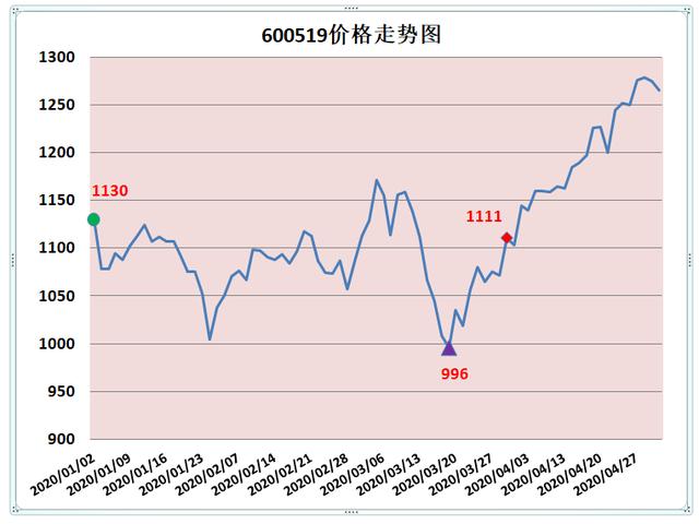 投资者在2020年1月2日以1130元的价格买入该股票,持有到4月30日的价格为1265.7元,则账面收益率为: