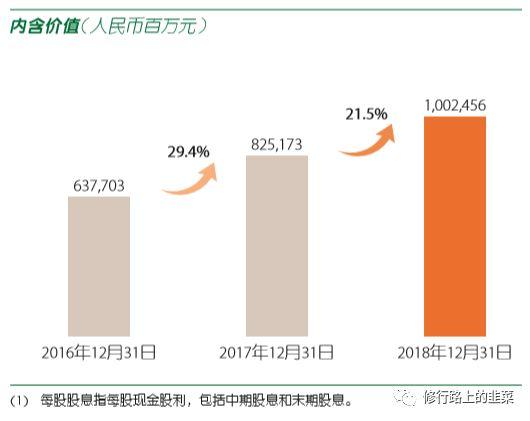 内在价值首次突破万亿,符合了本人之前的预期(小韭笔记——中国平安的内在价值),对应目前市值1.3PEV,个人认为高速增长的平安估值将会越来越贴近友邦,合理估值应该在1.5~2.0PEV之间。