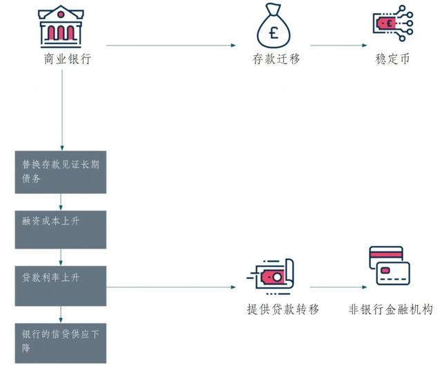 在实践中,数字货币的非银行提供商可能更专注于支付,而不是吸引主要作为价值储存储的存款。在这种情况下,他们可能根本不需要提供金钱激励。稳定币也将受到他们用于支持这些存款的资产回报的限制,他们可以为存款提供利率。这些资产至少需要高质量和高流动性。此类资产产生的回报可能低于银行所能获得的回报,后者可以用贷款等收益率较高的资产来支持部分存款。同时保险制度可以防止银行没有存款。