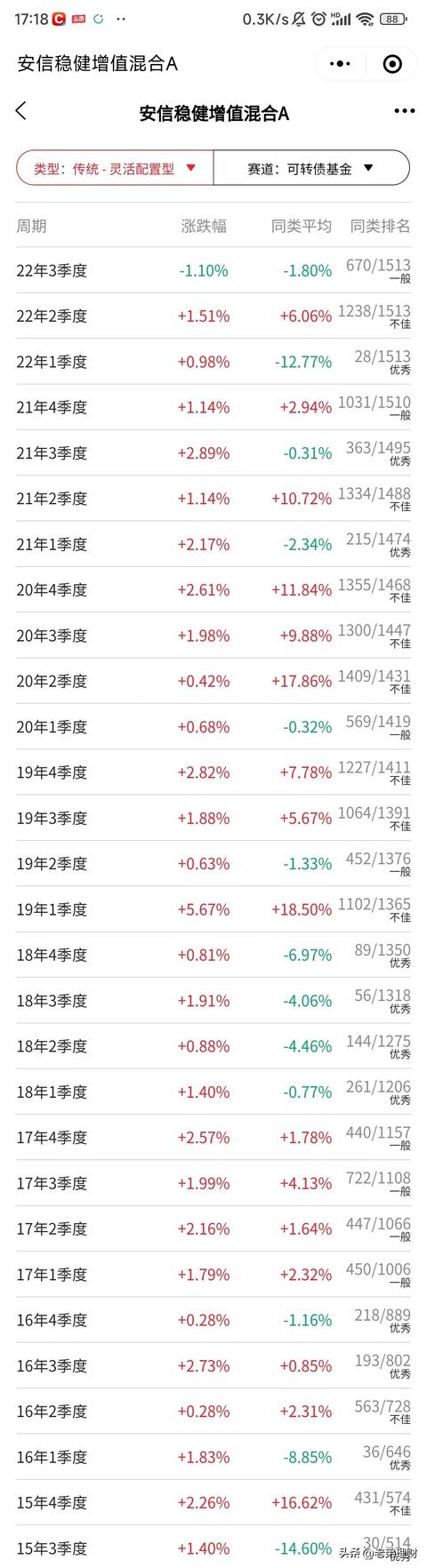 我们之前分享的基金,几乎都是年年正收益,而安心稳健增值更是狠,每个季度都是正收益,这才是他了不起的地方。已经连续28个季度正收益了,即使在今年第一季度遭遇股债双杀这么困难的的情况下,依然获得了0.98%的收益,那么目前第三季度还是-1.1%,那么还能否延续呢?