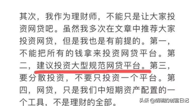 现在这个时候,大家知道,我为什么一直坚持投资大型规范网贷平台的原因了吧。大型,说明有实力有背景,整个行业都不行的时候,他们能够抗过去。规范,说明资产端没有问题,可以顺利的通过监管备案。(我在知识星球给大家优选的平台,自认为都可以通过备案。)