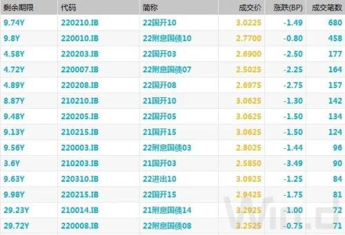 此外,“22海南银行永续债01”涨超5%,“21大连万达MTN001”涨近5%,“21腾越建筑MTN003”涨超3%;“21申证10”跌超8%,“21腾越01”跌超7%,“22惠民城建PPN003”跌5%,“20潍坊滨投MTN004”跌超3%。