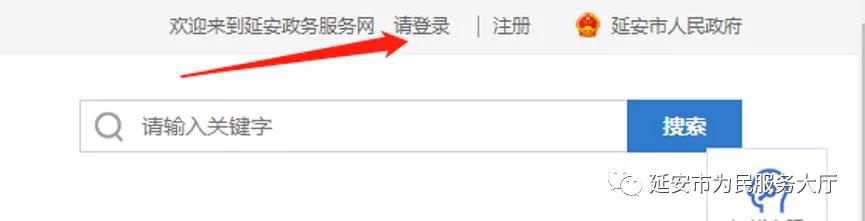 1.进入政务服务网主页后,在网站右上角进行账号注册、登录(已有政务服务网的账号,或在“延安政务服务”APP注册过多的用户,可以直接使用账号点登录)。