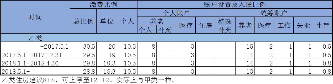 2. 从构成上来看,甲类和乙类的主要差别是甲类多了个人账户的养老补充部分和统筹账户的补充部分。