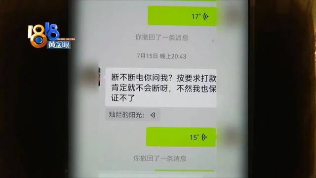 何女士:“7月15号又来向我要房租了,我说这不是按照承诺书上,你们自己出承诺书的,他说你不交上来的话,语气很强硬的,不交上来的话7月16号给我断电,10点多来通知我,他说把东西搬掉,通知是营运部的人通知的,微信上跟我聊天的,然后断电是第二天早上肯定是他们工程部的,肯定他们商场吩咐的,就给我电断掉了,7月16号早上来。”