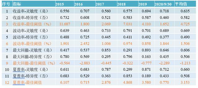 从历年的灵敏度和特异度指标来看,四个指标对定开债基的识别效果总体上要明显好于非定开债基,收益率、波动率、最大回撤和夏普率在各自最佳阈值下,对定开债基识别的平均准确率分别为0.635、0.669、0.606和0.660,不难看出最大回撤的效果相对较差,对于非定开债基的识别的平均准确率分别为0.582、0.490、0.506和0.508,数值上均未能超过0.6,波动率甚至不到0.5。