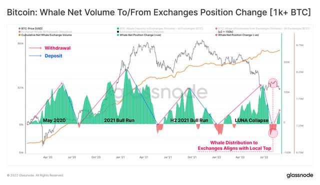 比特币:鲸鱼在交易平台持仓量变化的净值