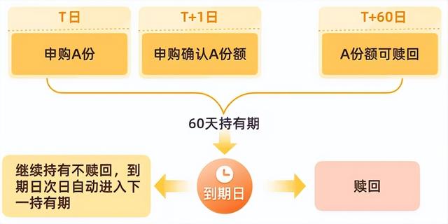 第二,设置了滚动持有期。以60天的滚动持有期为例,投资者在每个交易日均可申购,基金合同生效日(对认购份额,同下)或基金份额申请申购日(对申购份额,同下)后的第60天(如该日为非交易日,则顺延到下一交易日,同下)为第1个运作期到期日;基金合同生效日或基金份额申购申请日后的第120天为第2个运作期到期日,以此类推。到期未赎回将自动进入下一个运作期。