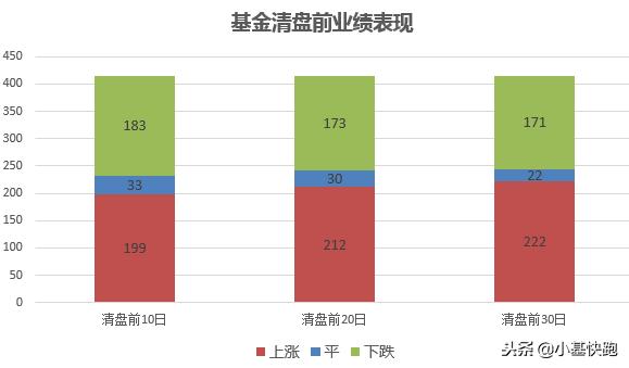 我们统计了除货币基金外的415只清盘基金,在清盘日前10日、20日、30日的业绩表现。