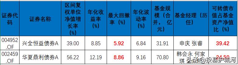 再来看看部分可转债占比高,但回撤小的债基,是如何做到的?代表基金是兴全恒益债券、华夏鼎利债券,这两只基金的可转债都在25%及以上,但是回撤都控制在6%~9%以内。以这种高可转债比例,依然能取得低回撤的业绩并不多见。