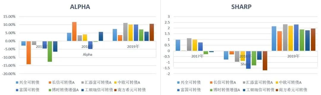 近三年,Calmar比率最高的两只基金分别是:2017年,兴全可转债,汇添富可转债;2018年,长信可转债A,兴全可转债;2019年是汇添富可转债和中欧可转债。