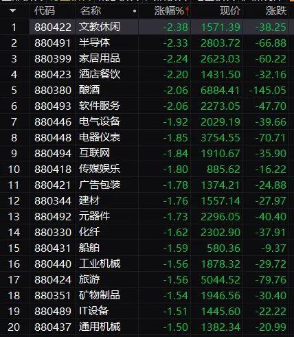 文教休闲、半导体、白酒等板块跌幅较大。