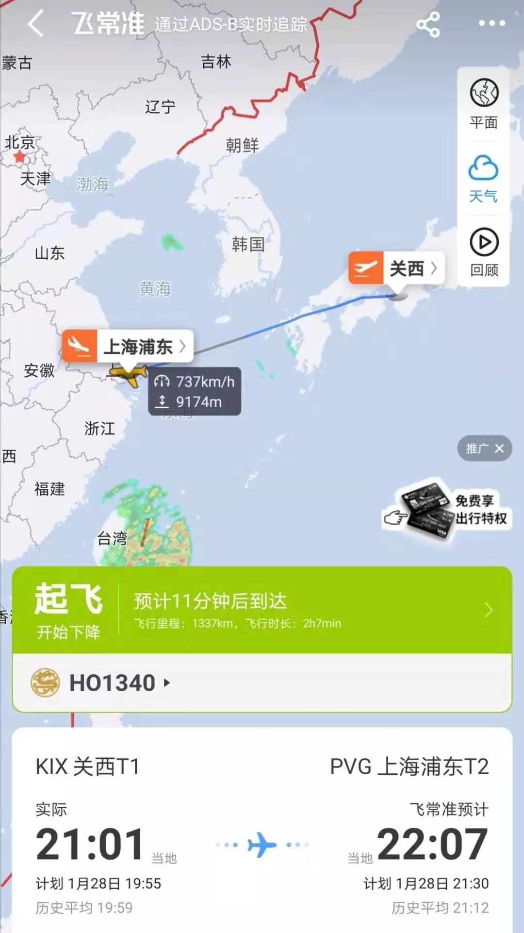 1月28日晚,原本为大阪关西到上海浦东的HO1340航班上没有其它旅客,只有94位湖北籍乘客。此前,吉祥航空经过反复协调和申请,将本次航班的最后降落地改为武汉,并提前逐个沟通,把其它人改签航班返回了上海。