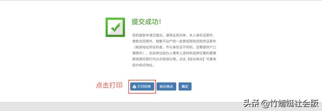 在提交成功页面,点击【打印回单】,打印《北京住房公积金管理中心业务凭证回单》,(如需查询业务办理机构,点击【经办网点】,这里小编没有点击,应该是人事小姐姐的事情)点击【确定】,提取申请完成。