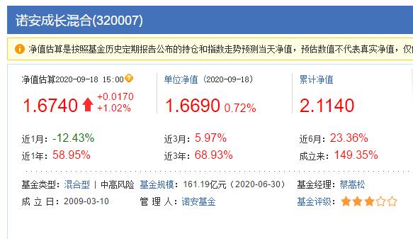 2、基金类型:混合型 | 中高风险基金规模:161.19亿元(2020-06-30)基金经理:蔡嵩松成 立 日:2009-03-10
