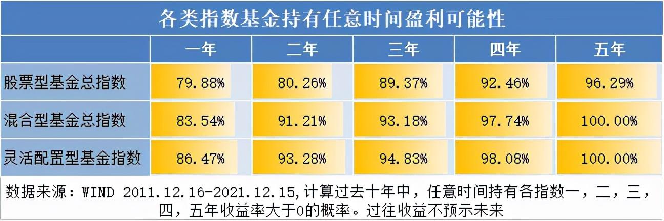 基于过往的历史数据来看,持有基金3年以上,有较大的赚钱概率。