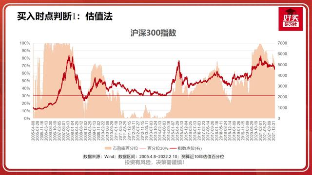 以沪深300指数为例,测算近10年估值百分位,可以看到,当PE百分位低于30%以下,基本都对应指数的低点,如2008年底、2011~2014年、2016年底、2018年底。如果把握住机会,都会迎来一波较大幅度的上涨。