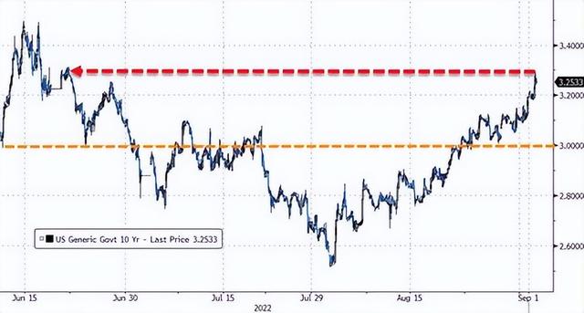 例如,被称为“全球资产定价之锚”的10年期美债收益率升势仍未出现止歇的迹象。9月第一周一度升至6月以来的最高水平,达到3.258%。与此同时,30年期美债收益率更是一度上升至高达3.364%。美债收益率与价格呈反比,收益率越高,说明美债跌幅越大,抛盘越猛烈。