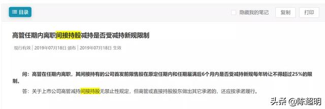 而在实践中,董事、监事、高级管理人员会通过持股平台,如合伙企业或者有限责任公司等组织形式间接持有上市公司股份,那么间接持股的股份减持时,需要遵循的规则是否视同于直接减持的情况呢?