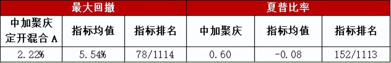 表:中加聚庆定开混合A近一年回撤、夏普表现