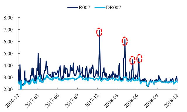 我们先来看流动性环境。2017年末的跨年是很惊悚的,而从事后复盘的角度来看,流动性松紧的变化也正始于年初,虽然真正的确认信号要更晚些到来。从年初开始,虽然有CRA,也有公开市场加量,但在"去杠杆还有三年"的提法之下,市场普遍都认为这只是为了春节、两会等重要节点保驾护航,并不是真正的转松。