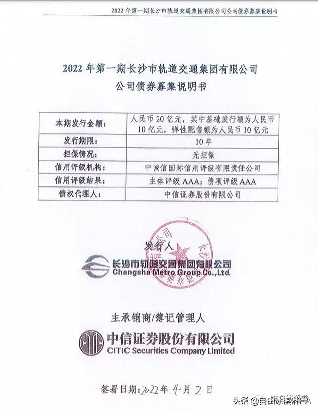 根据相关募集说明书,此次拟发行的债券名为2022年第一期长沙市轨道交通集团有限公司公司债券(简称 22 长沙轨道债 01)。